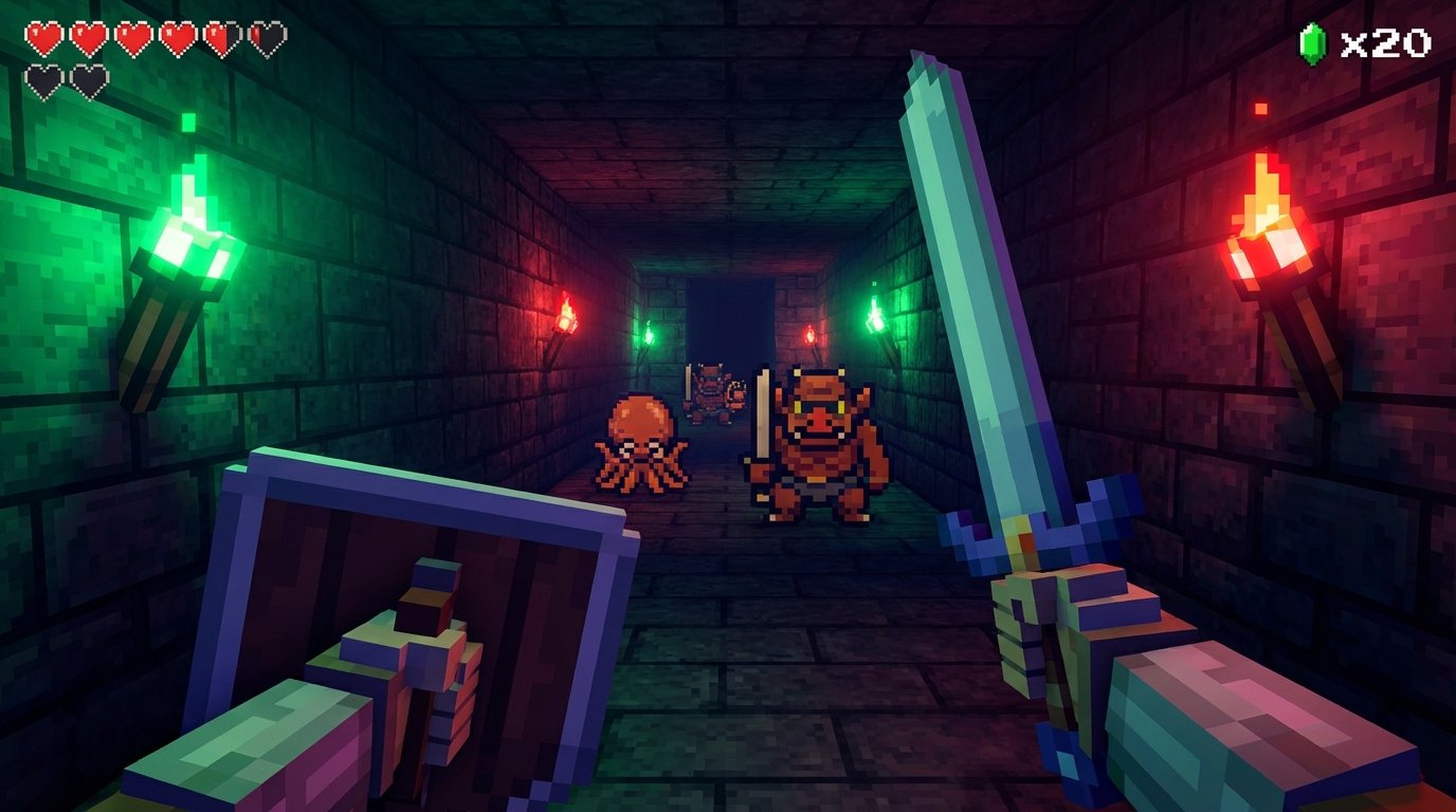 On pourrait croire à un simple gadget, mais le travail réalisé sur ce mod est impressionnant. Le créateur a recréé l’intégralité de la map d’origine, mais avec une perspective à la première personne qui change radicalement la meta du jeu. Se retrouver face à un Darknut ou un Lynel dans un couloir étroit, ça demande une réactivité qu’on n’avait pas besoin d’avoir sur NES. On est sur un feeling très fast-FPS : on strafe, on switch entre l’épée et l’arc à la vitesse de l’éclair, et on gère son inventaire en plein combat.